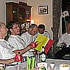 Zaterdag 13 januari nieuwjaarsfeest bij Wil en Ada, samen met Ruud en Cobi, stond op de uitnodiging die alle lapjes ontvingen vorig jaar. Om half zeven stonden de eerst Lapjes op de stoep voor een heerlijk stamppotbuffet door de dames en heren zelf bereid. Na al dit lekkers volgde nog een digitaal jaaroverzicht op TV van Paparazzi, er was toch wel weer erg veel gebeurd dit jaar, het was een prima jaar met af en toe een domper. Vervolgens deed de voorzitter een poging de vergadering te openen, maar na het fiasco van vorig jaar waren hier weinig Lapjes voor te vinden. Ook de verkiezing van de Dieker van het jaar kwam niet echt uit de verf, geen van de Diekers had, op een boel lawaai na, iets bijzonders gepresteerd afgelopen jaar. Wat wel werd gewaardeerd was het persoonlijke woord van de voorzitter voor ieder Lapje, al was dan niet voor iedereen even positief. Smartlapje had veel nieuwe liederen aan het repertoire toegevoegd zodat er weer uit volle borst gezongen kon worden, heel leuk en amusant. Ook de aanwezige RaceReetjes lieten goed van zich horen en zongen enkele voor hun geschreven nummers mee. Biston verzorgde nog een solo optreden met een eigen geschreven nummer waar alle Lapjes in voor kwamen (klik hier). Wil, Ada, Ruud en Cobi, hartelijk dank voor het heerlijke eten en de drankjes. Paparazzi |