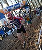 Eerst maar eens gekeken naar de junioren, om een beetje gevoel te krijgen hoe dat veldrijden er uit ziet. Er was een mooi slingerend parkoers uitgezet, waar nagenoeg geen 150meter recht stuk in zit en genoeg lastige draai en klimstukjes. Natuurlijk ontbrak de zandbak ook niet.
