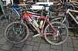 Hierna werd de Garmin pijl richting Daun gezet. Voorbij de ALDI gingen we links het bos in, maar na 5 km waren we al weer hopeloos de weg kwijt en reden we door een weiland en dwars door een bos. De Voorzitter en Knien stonden daarna op het pad op de rest te wachten, tot een vreselijk gekraak van takken hun gesprek verstoorde en er onder luid gepiep van remmen een Cannondale uit het bos kwam zetten met Stampertje aan het stuur…Hij moest zo hard remmen dat hij over de kop sloeg en op een haar na De Voorzitter mistte….Toen iedereen uitgelachen was, gingen we weer verder om vervolgens voor de tweede keer bij de ALDI uit te komen….