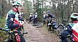 Vlak bij Nunspeet was het tijd voor de bananenpauze en daar waren een aantal Lapjes die een paar wandelende dames de stuipen op het lijf joegen, toen ze met hun door de kou verschrompelde plassertje probeerden af te wateren... (of werden de dames er juist opgewonden van..). Friedje vond het tijd worde om naar huis te gaan, maar daar werd niet echt gehoor aan gegeven en er werd nog even een rondje langs de crossbaan gemaakt over de singletrails!